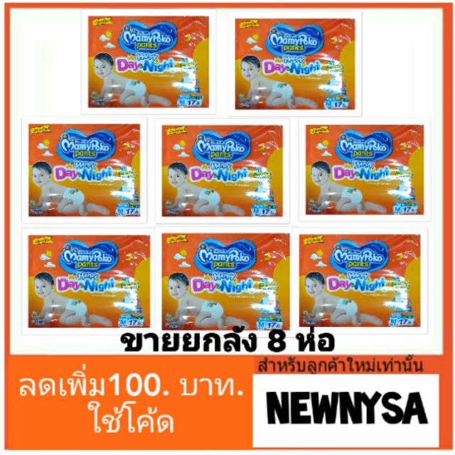 แพมเพิสเด็ก MamyPoko happypants daynight ลังละ 8 ห่อ